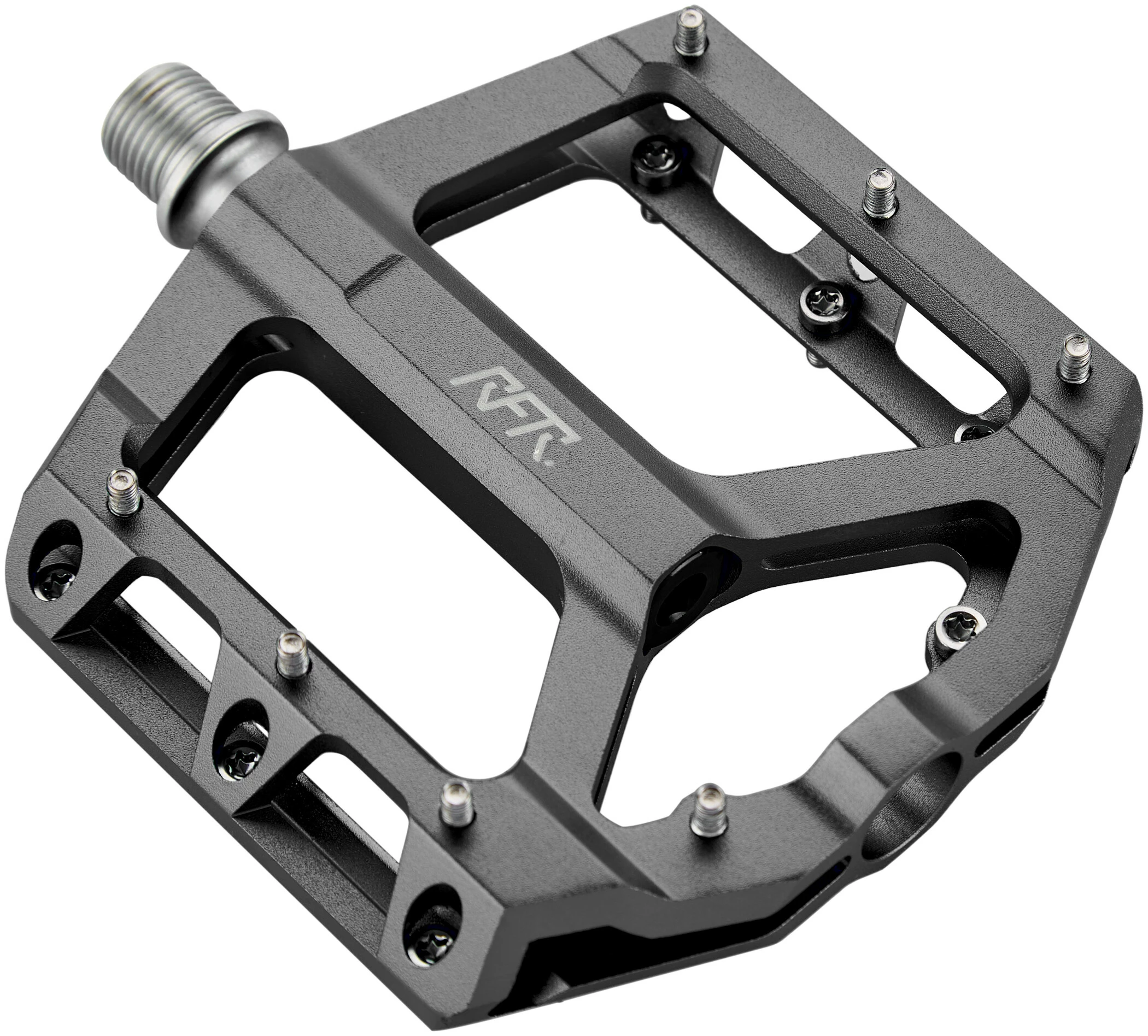 CNC-fræset flad pedal af høj kvalitet i aluminium med et aggressivt fladt design. De udskiftelige stifter og det store, skridsikre fodaftryk giver det bedste greb og den bedste sikkerhed. Med CrMo aksel for lang levetid.