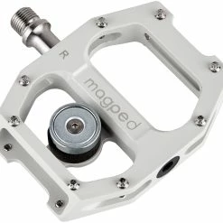 <p>Den magped sikkerhedspedal er en pedalinnovation til mountainbikes og elcykler. Takket være den patenterede magnetiske mekanisme er det muligt at fjerne foden sikkert, hurtigt og nemt fra pedalen når som helst. Risikoen for fald og skader er reduceret til et absolut minimum sammenlignet med pedaler med faste forbindelser – og hovedet forbliver frit, så du kan cykle uden frygt. Producenten anbefaler en magnetisk styrke på 150 N for ryttere på 65-90 kg og 200 N for ryttere på over 75 kg.</p><p><b>Runde trin</b><br>Den magpedale pedal gør det muligt at træde rundt, da både de strækkende (70 %) og de bøjende (30 %) muskler i benmuskulaturen belastes ligeligt. Så selv længere cykelture bliver en ren fornøjelse.</p><p><b>Vægt</b><br>Magped-pedalen er en moderne flad pedal af høj kvalitet, der er fremstillet af let CNC-fræset aluminium og en CrMo spindel. Vægten inklusive det patenterede magnetsystem er kun 452 g (100 N magnet) eller 474 g (150 N magnet) pr. par.</p><p><b>Position</b><br>Pedalen tillader en let rotation af skoen og beskytter dermed leddene, når du træder i pedalerne. Positionen kan også varieres fremad og bagud uden at ændre trækkraften, hvilket gør det nemt at finde den ideelle position til både stigninger og nedkørsler.</p><p><b>Trækkraft</b><br>Afhængigt af den valgte magnetstyrke holdes skoen magnetisk fast på pedalen med op til 15 kg trækkraft. Trækkraften virker hovedsagelig vertikalt, og det er muligt at løsne sig fra pedalen næsten uden mærkbar modstand. Men også en hurtig og nem frigivelse i kritiske situationer direkte til toppen er ikke noget problem.</p><p><b>Teknologi</b><br>Den magped pedal er udstyret med 3 forseglede industrielle kuglelejer af høj kvalitet. Pedalens stifter kan ændres om nødvendigt. Højden på den højtydende Neodymium-magnet kan justeres via en særlig integreret polymerophæng.</p>