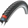 Dæk, der er skånsomme for hænderne. Sidevæggen er helt glat. Dækkene glider forsigtigt forbi hænderne. Dette er patenteret og standard for alle Schwalbe-kørestolsdæk.